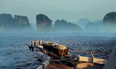 So, this evening, we sailed into sight of these islands, constantly shrouded with thin layer of fog, and are readying our gear for our first foray into the jungle. I snapped this photo from the deck just minutes ago. As soon as I upload this to our satellite feed and place it into your good hands, I'm going back topside to drop a line in and have a scotch! I hear these waters are crawling with African Pompano... let's hope they're biting!