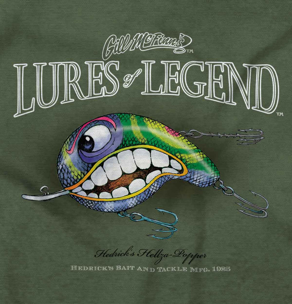 The Hellza-Popper is a great example of a surface lure that meant business in the world of shallow water largemouth bass fishing. The hellza-popper came to work loaded for bear and with an attitude like a badger with a bee in its butt. Skittering across the surface, this little devil would often snag two or three fish at a time and could turn a peaceful lake into a war zone with one cast. The hellza-popper famed multi-barb top hook looks like something dug out of a torture chamber from the Middle Ages and many a fisherman went to the hospital after a stray cast caught an appendage. This ironic