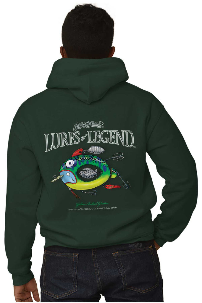 In 1958 the face of fishing changed in the Gulf of Mexico with the appearance of the behemoth of the lure world :The Yellow-Bellied Glutton. Willit ingenious See-Thru Stomach was a breakthrough in lure technology, offering the prey a two course meal in one bite. It proved irresistible and the Glutton landed many a catch and became one of the favored lures from Corpus Christi to Key West. What happened next, nobody could have guessed. In 1962, Willit began using a different supplier for the yellow paint that colored the Glutton belly. Unfortunately, the new paint proved irresistible to only one