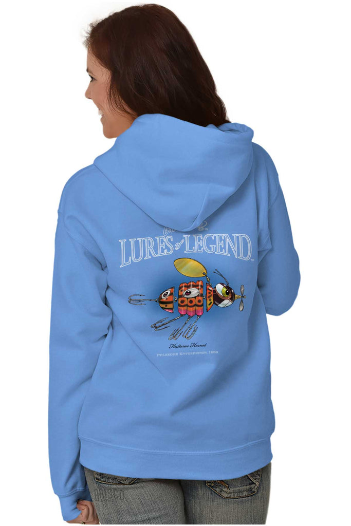 An avid fisherman, Richard Keith spent many a day in the waters just below the famed Outer Banks and off the shores of the Shackleford Banks, a barrier island populated by wild horses. Keith had noted the large amount of flying insects that were unique to the banks, drawn there by a plentiful food supply left, er... behind by the horses. Being a glass artist in his free time, Keith fashioned the prototype for the Hatteras Hornet out of beautiful colored glass with a jewel-encrusted side plate and brass wing-spoon. This Zip Hoodie shows just that.