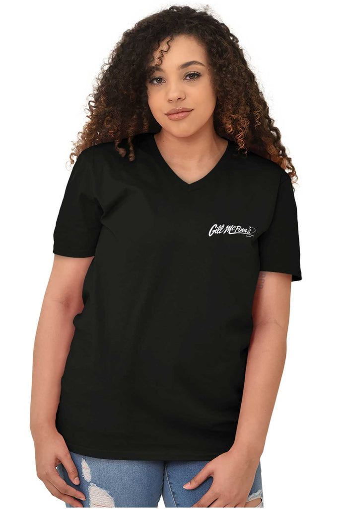 Gill McFinn's Fish Tales ensures that fisherman and anglers alike can always reel in a geat catch. This V-Neck T Shirt is perfect for any fisherman or fisherlady in your life!