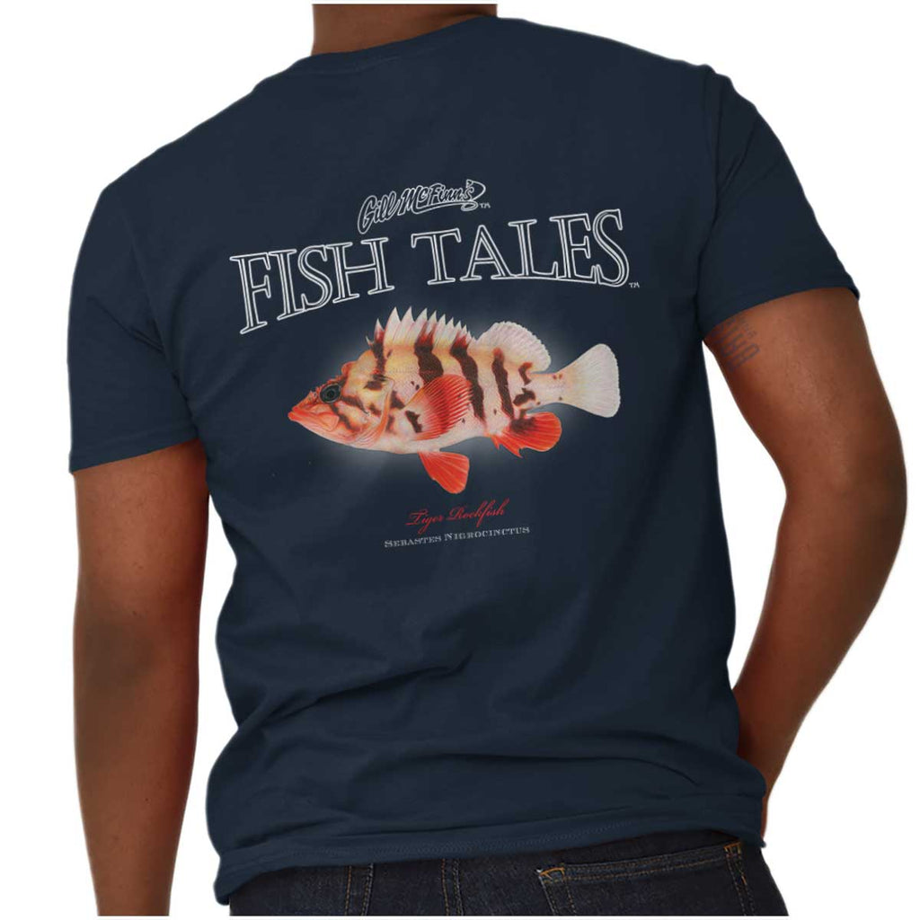 The bottom of the Pacific Coast is littered with small beautiful species. The Tiger Rockfish is no exception. As a bottom dweller, this foot long red hued Rockfish is only occasionally caught by commercial harvesters. Since it is not a sporting fish, they can live to be centenarians! This V-Neck T Shirt will be the only chance you have to hook one. Divers even have a hard time observing the signature dark bar pattern across their bright scales. These rockfish rarely come out during the daylight hours, spending their time in the rocky crevices of the coast.