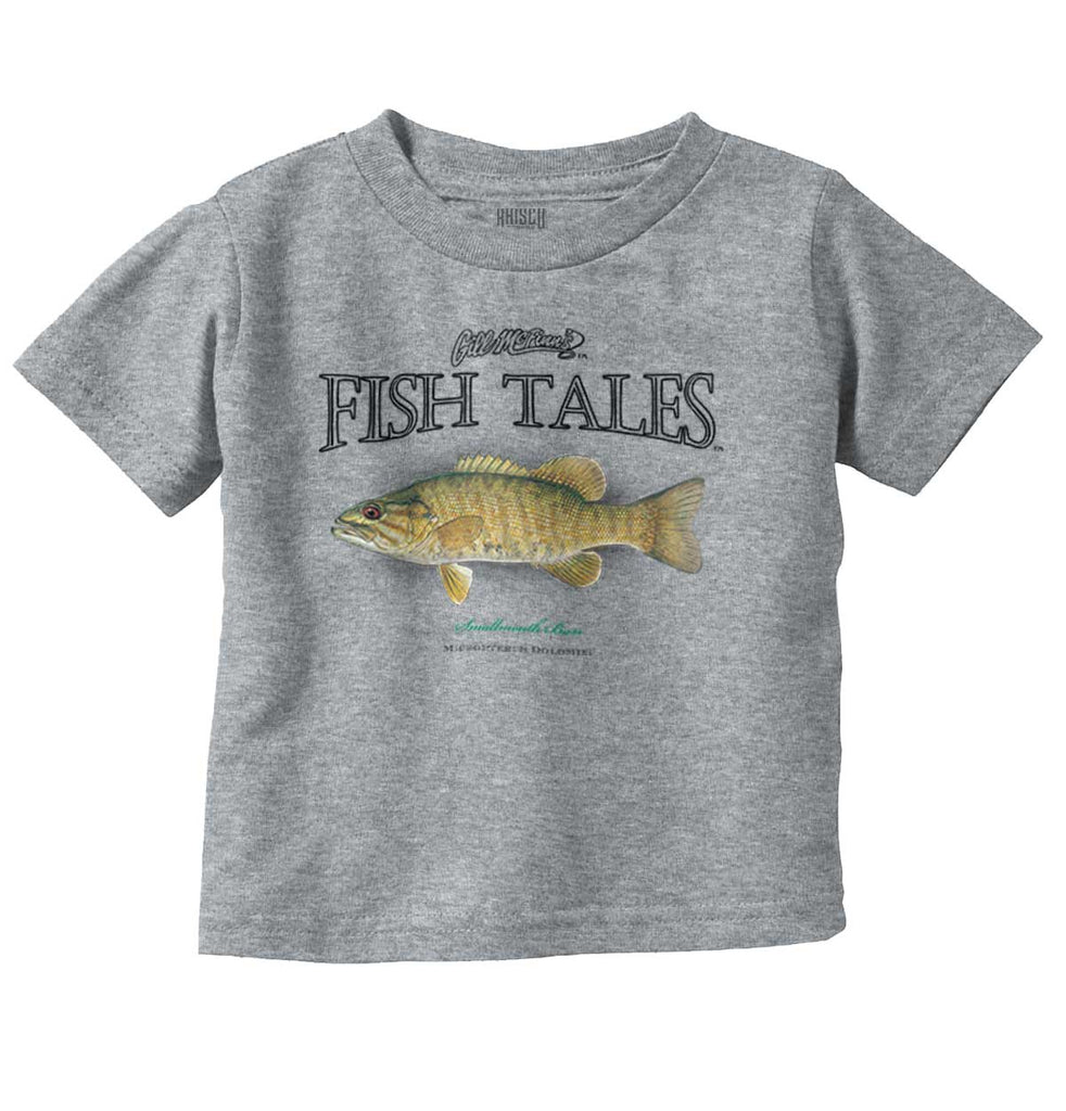 The smallmouth bass doesn’t crack as many jokes as the largemouth bass, thus the designation. But seriously though, the small mouth bass is part of the black bass family, and is one of the most sought-after of the basses. It’s one of the toughest fighting freshwater fish in North America and is highly regarded for its topwater fighting ability when hooked. We love fishing for the sport, and smallmouth bass is just one of those fish that can give us the challenge we look for. We made a Infant Toddler T Shirt that reminds us why bass fishing is so great.