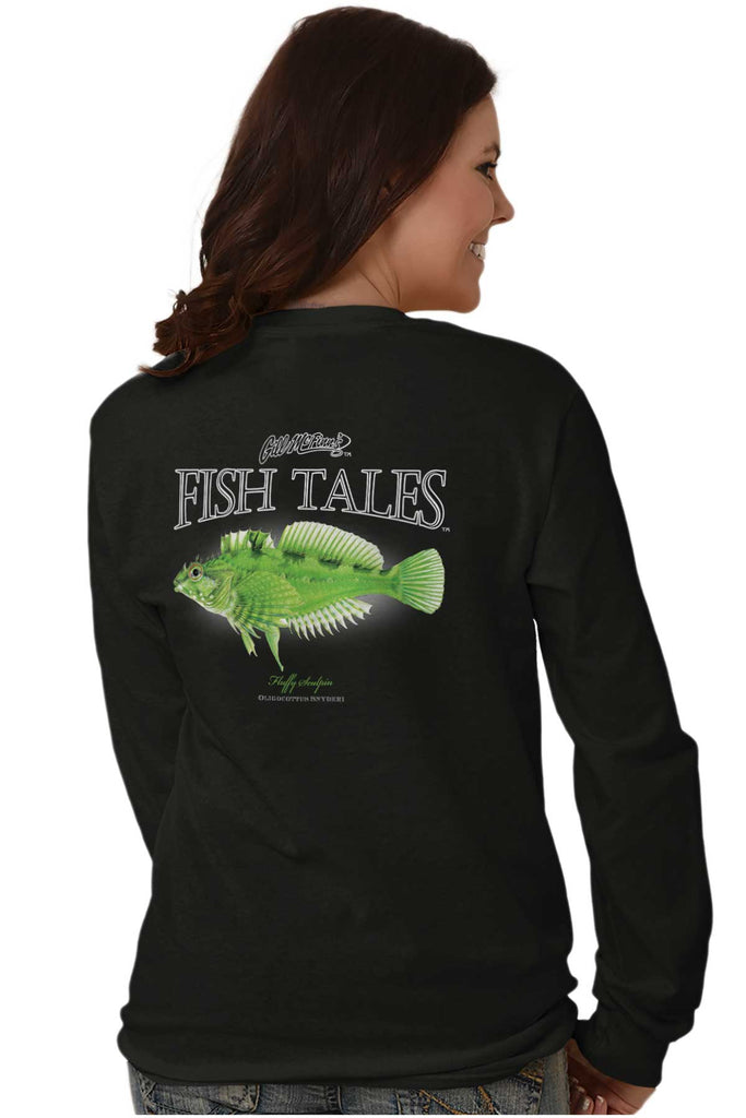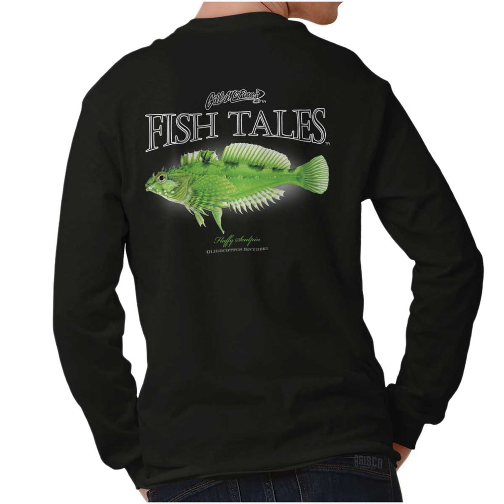 Ever looked for bait in tide pools along the Pacific Coast? If you have, you have probably encountered one of the over 70 species of sculpins. Ever bag a Fluffy Sculpin? Then, this Long Sleeve T Shirt is for you! Most likely, you were wading in some algae if you did bag this 3 inch fish. They have been known to be pretty shy and their coloring is like camouflage. Their emerald hue can look identical to the algae in which they commonly reside, so make sure you wear your glasses! You’ll also get a better view of the distinctive hair like projections along their body.