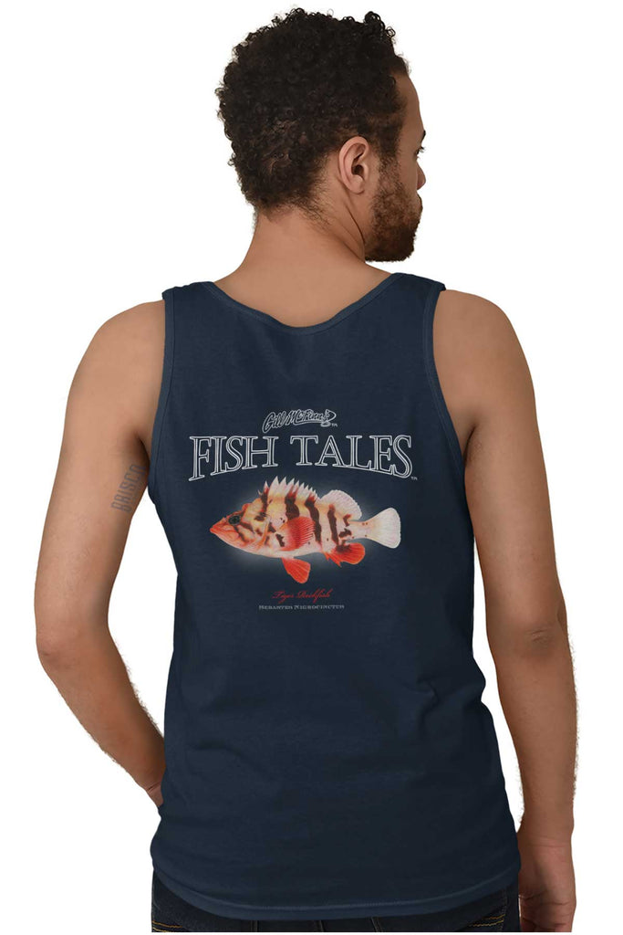 The bottom of the Pacific Coast is littered with small beautiful species. The Tiger Rockfish is no exception. As a bottom dweller, this foot long red hued Rockfish is only occasionally caught by commercial harvesters. Since it is not a sporting fish, they can live to be centenarians! This Tank Top will be the only chance you have to hook one. Divers even have a hard time observing the signature dark bar pattern across their bright scales. These rockfish rarely come out during the daylight hours, spending their time in the rocky crevices of the coast.