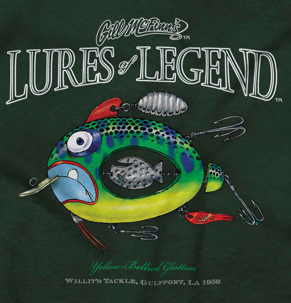 In 1958 the face of fishing changed in the Gulf of Mexico with the appearance of the behemoth of the lure world :The Yellow-Bellied Glutton. Willit ingenious See-Thru Stomach was a breakthrough in lure technology, offering the prey a two course meal in one bite. It proved irresistible and the Glutton landed many a catch and became one of the favored lures from Corpus Christi to Key West. What happened next, nobody could have guessed. In 1962, Willit began using a different supplier for the yellow paint that colored the Glutton belly. Unfortunately, the new paint proved irresistible to only one